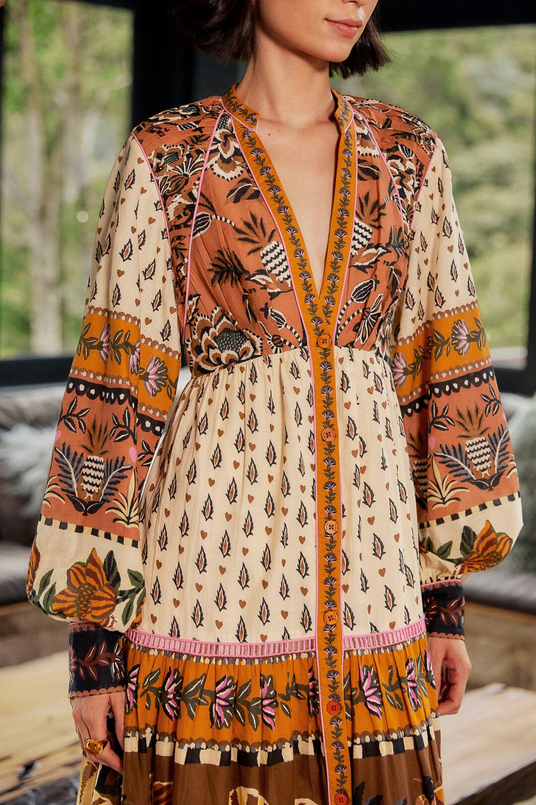 Flow through the mid-season with the Beige Ainika Floral V Neck Midi Dress. This piece features an elegant silhouette with a show-some-skin neckline to flatter you from head to toe and help you turn heads along the way. The floral print and kind tones match the season's natural hues and elements. From cozy loafers and mules to fashionable platform sandals (and everything in between!), invite your favorite shoes to complete the outfit and walk around as if you belong to the landscape.