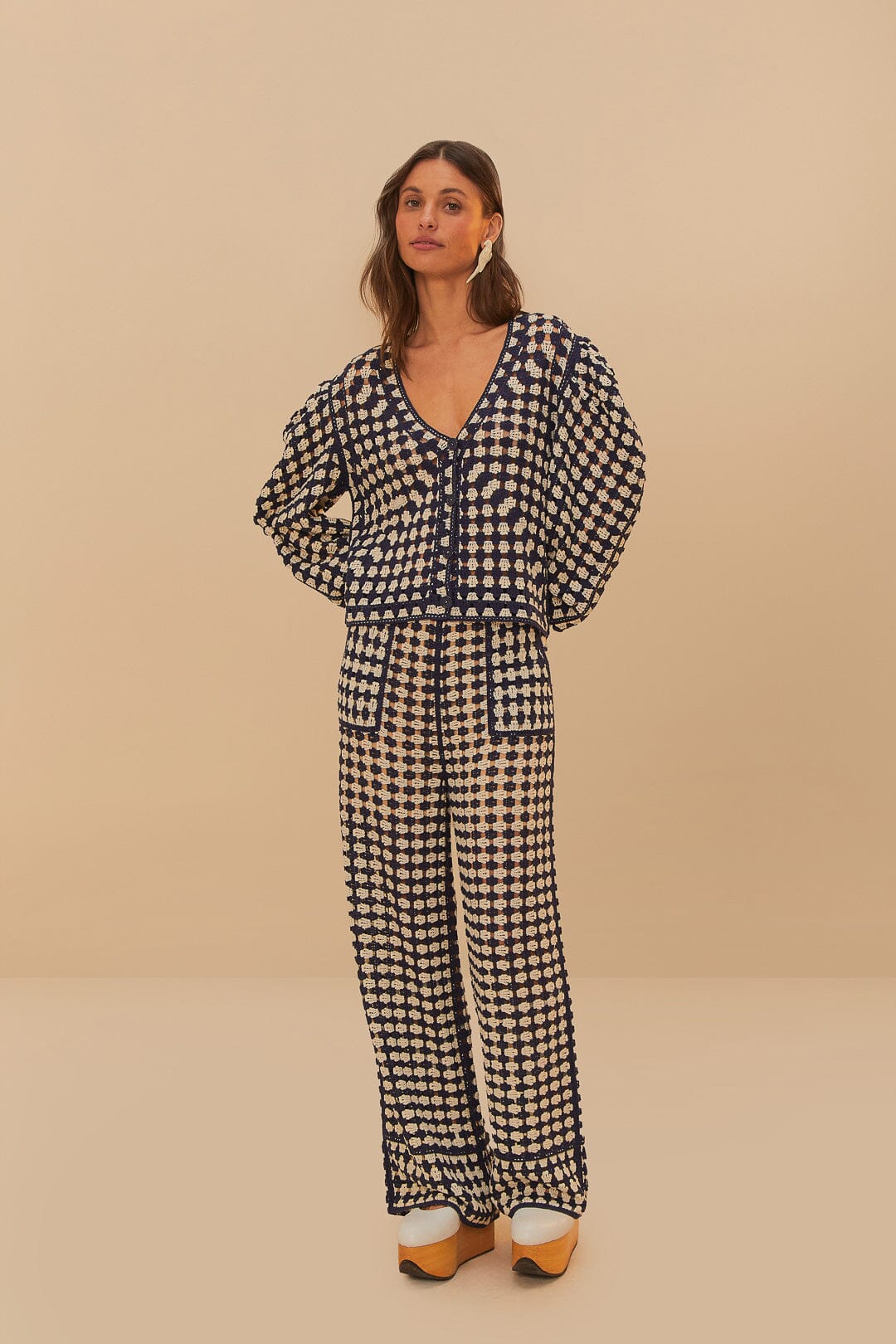 blue and white crochet cardigan