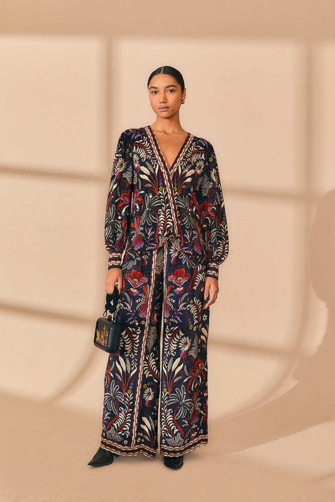 black classic garden mirror trim blouse