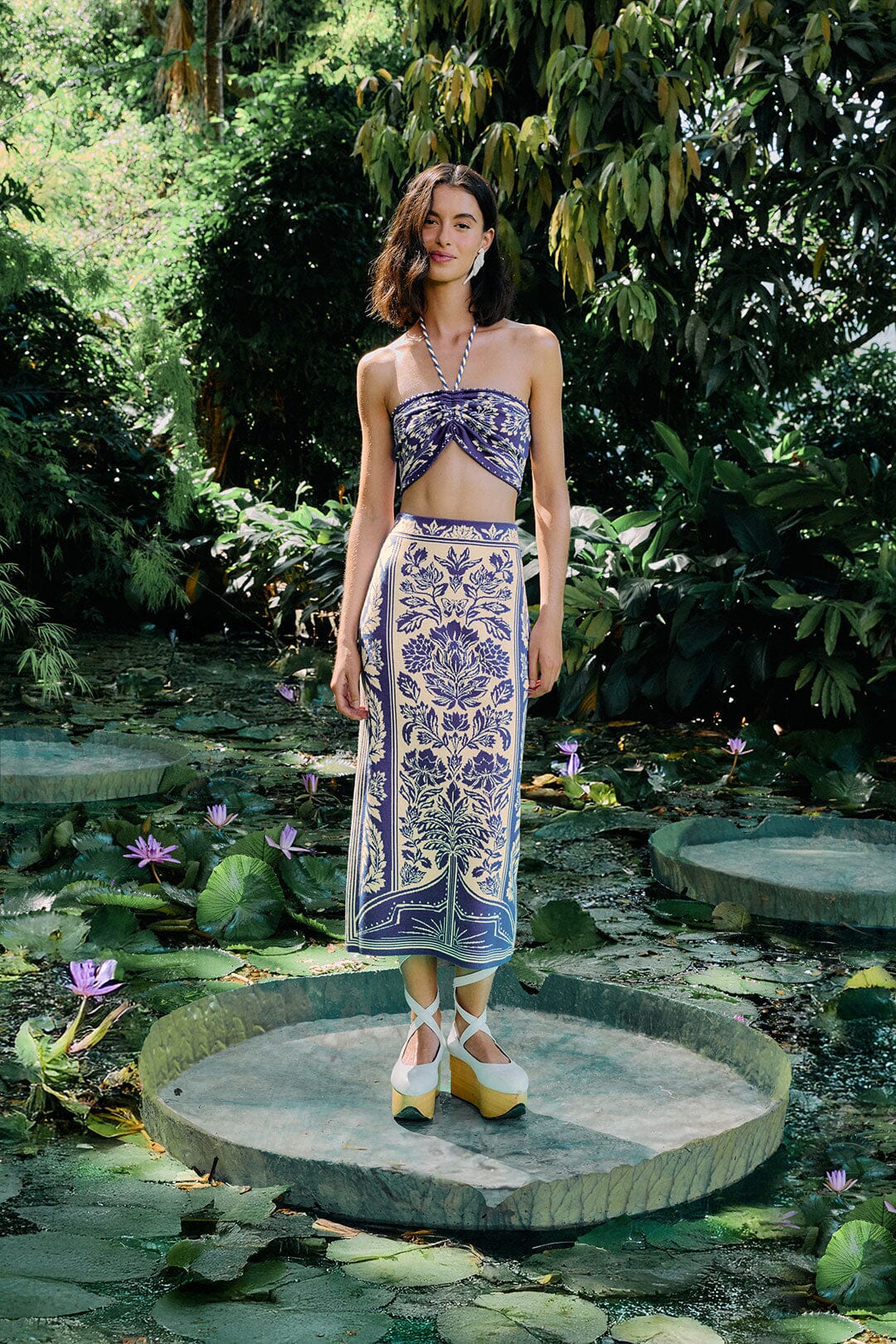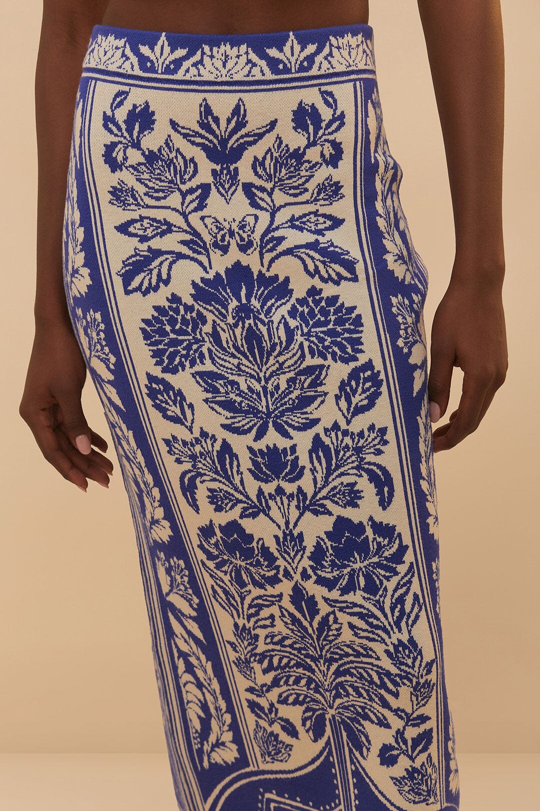 Step into timeless elegance with the Off-White Delicate Tapestry Knit Skirt. This stunning piece features intricate blue floral patterns against a classic off-white knit, capturing the essence of delicate artistry. Its midi length and sleek silhouette add a touch of sophistication, while the beautifully crafted tapestry design evokes a sense of playful charm. Perfect for those who appreciate the allure of refined details in everyday fashion.