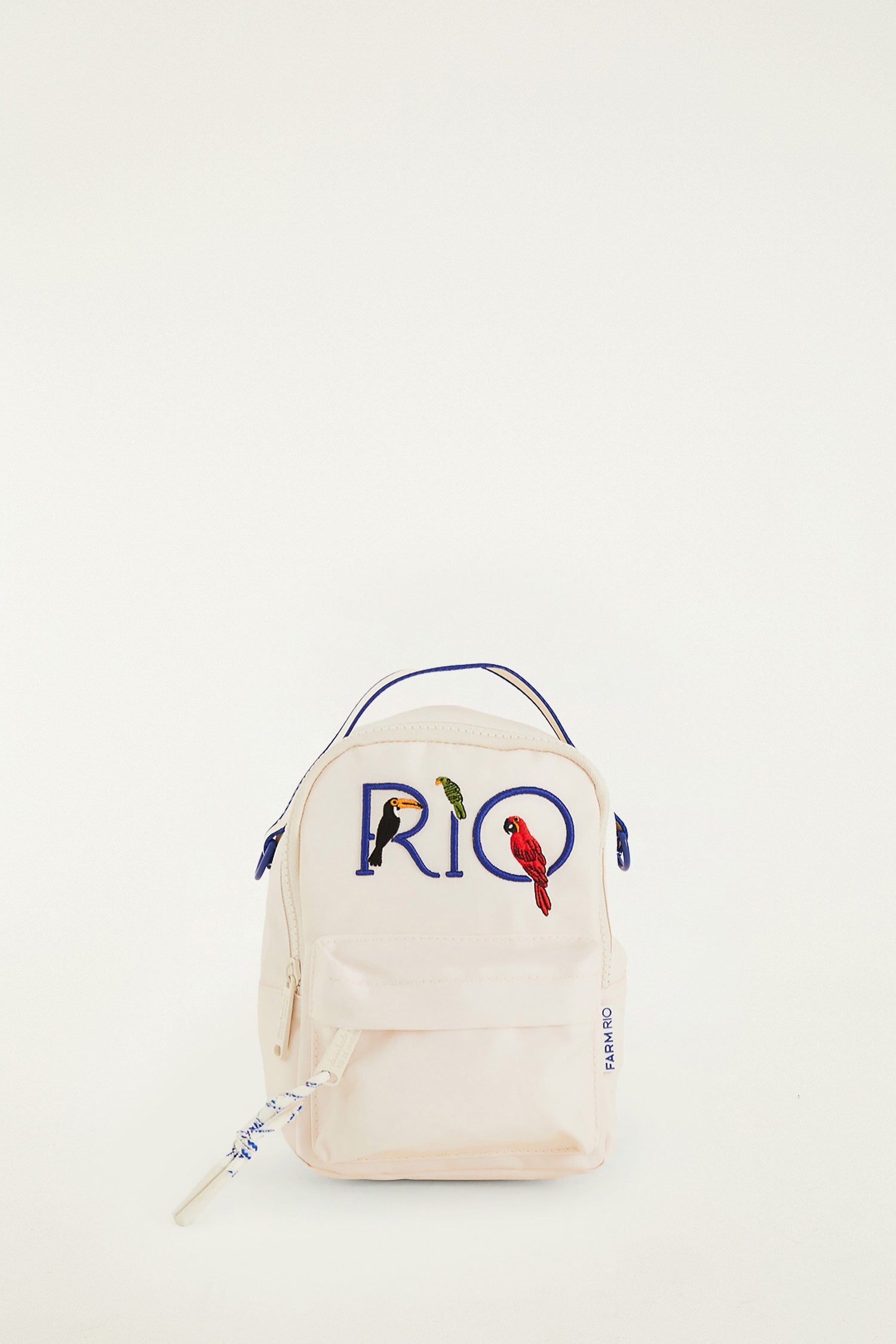 Embrace effortless charm with the Off-White Rio Mini Backpack from FARM Rio. Crafted in a soft, off-white hue, this playful accessory features delicate embroidered tropical motifs that bring a touch of Brazilian warmth. Its compact silhouette is perfectly balanced for casual days, while subtle curved edges add a gentle softness. Ideal for carrying essentials with a spirited, colorful twist that effortlessly elevates any look with a joyful vibe.