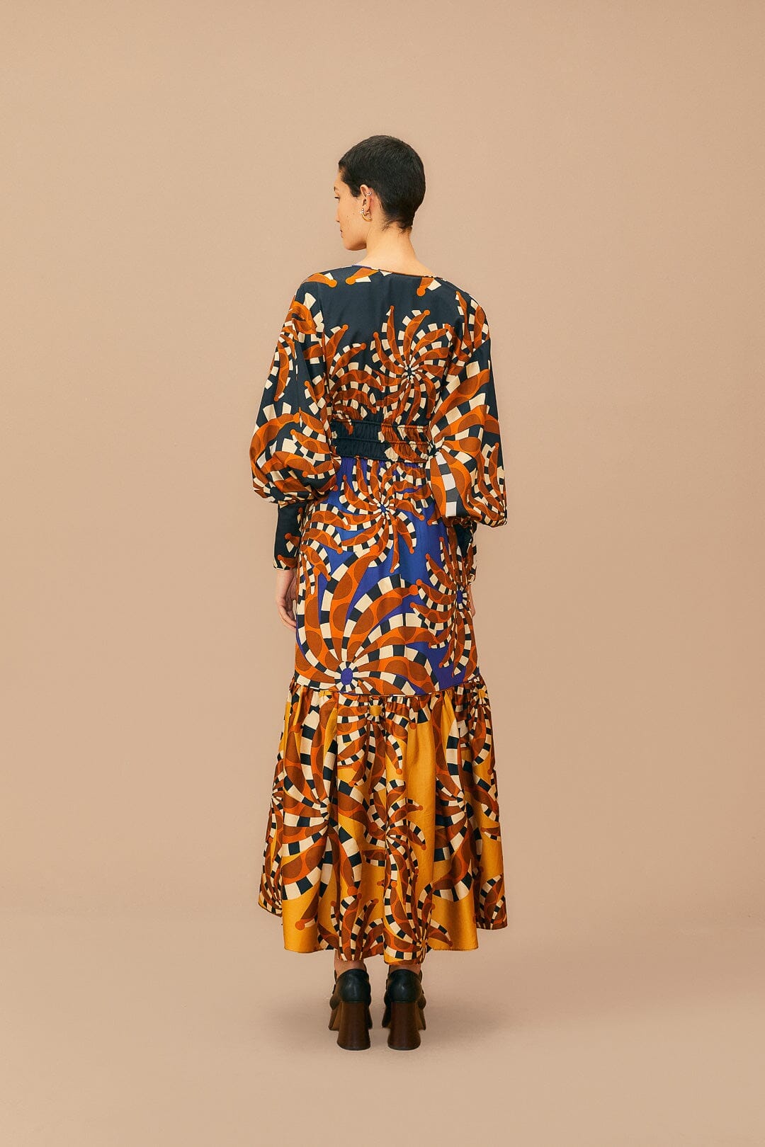 mixed bananada long sleeve maxi dress
