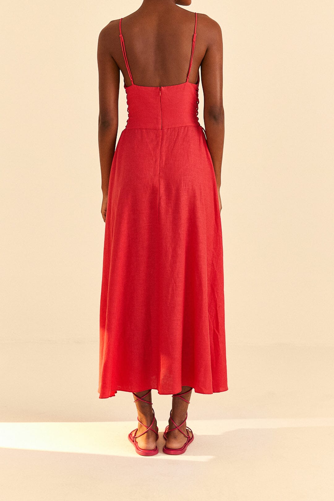 red sleeveless midi dress