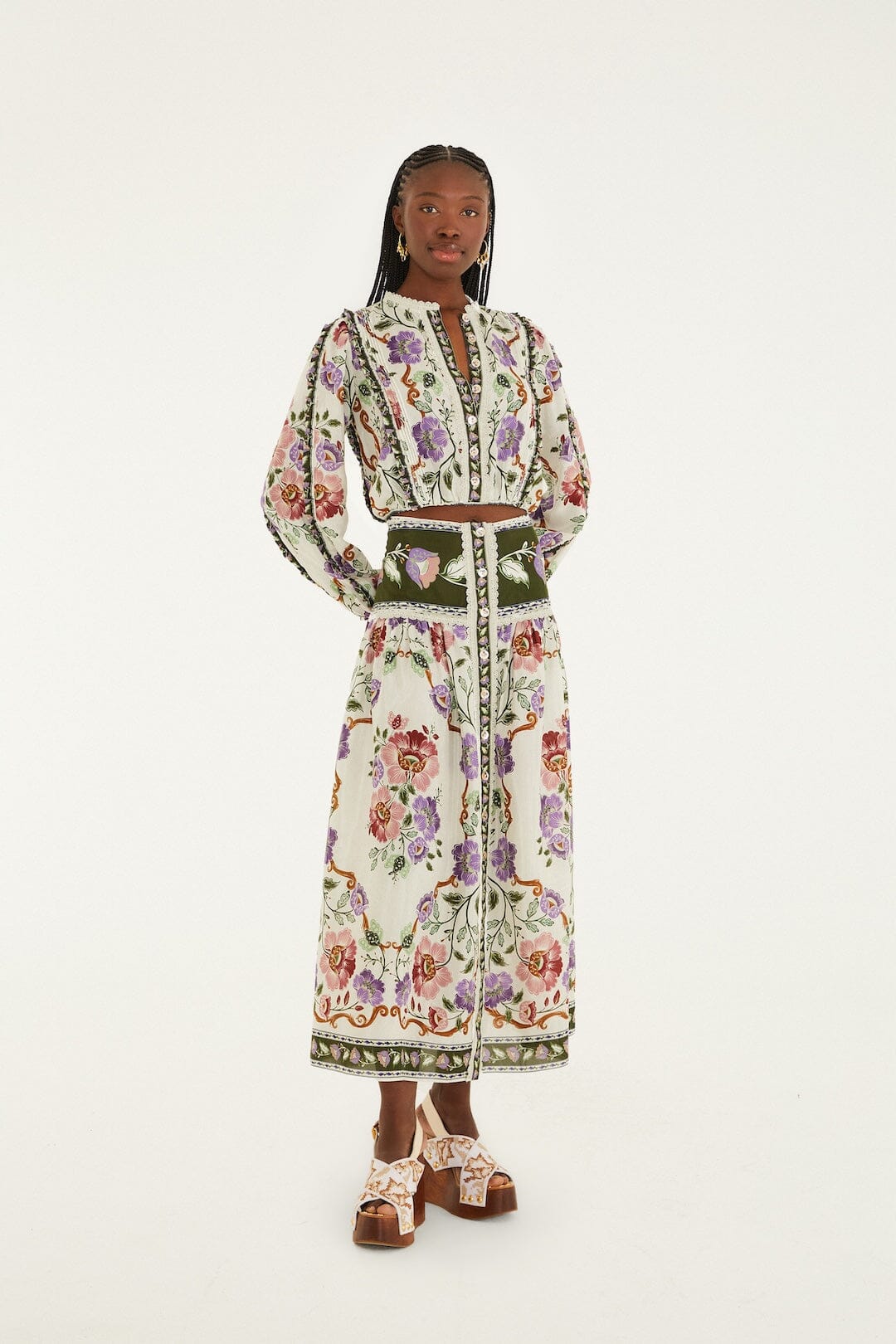 Embrace effortless elegance with the Cream Rococo Flowers Lace Long Sleeve Blouse from FARM Rio. This dreamy top features delicate lace adorned with intricate floral Rococo patterns that dance softly across the fabric. The round neckline frames the collarbone gently, while billowy long sleeves add a romantic, airy silhouette. Its cream hue brings a tender warmth, making it the perfect piece to bring a touch of playful sophistication to your day.