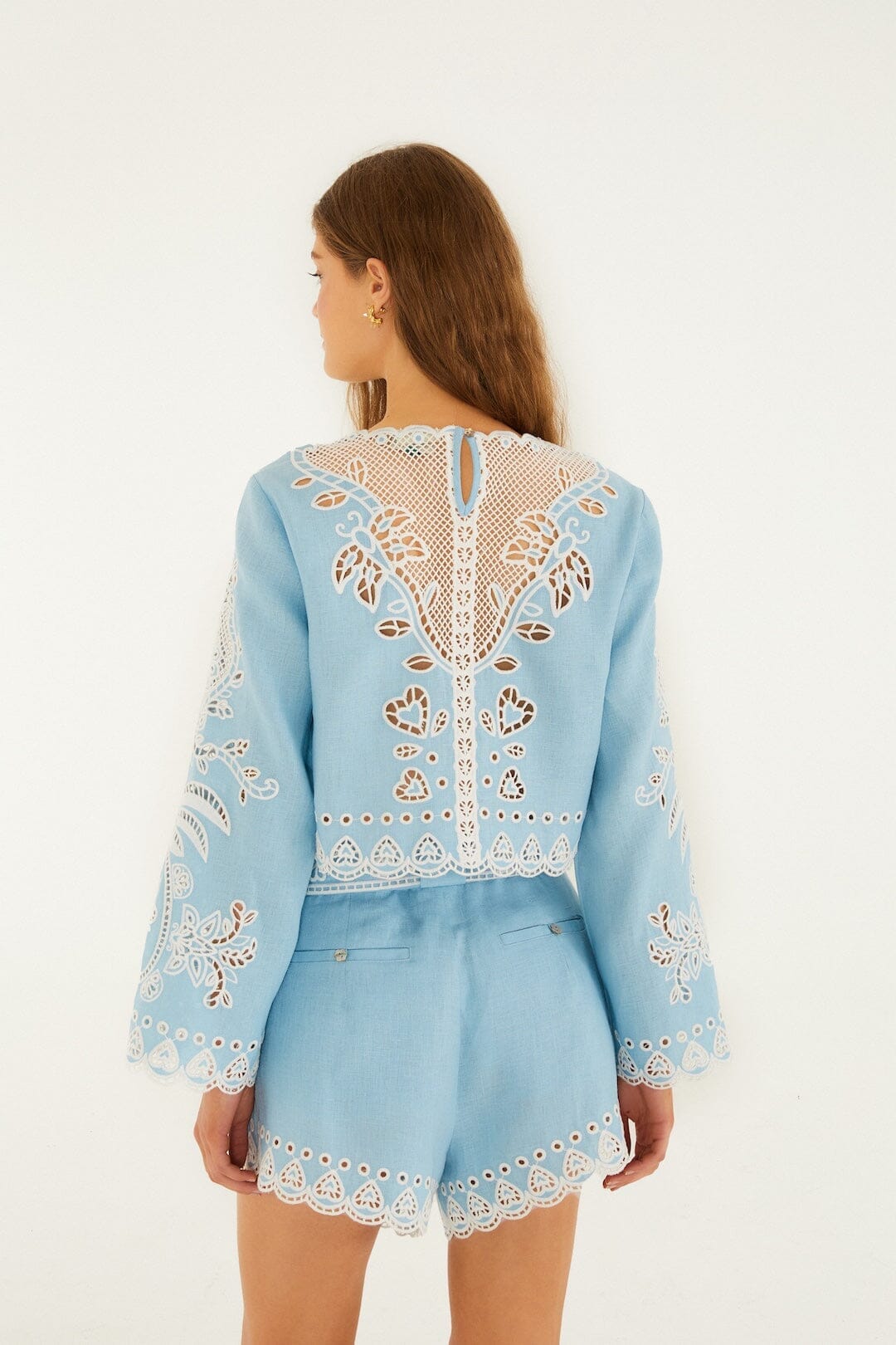 Embrace effortless charm with the Light Blue Romantic Richelieu Euroflax™ Premium Linen Shorts from FARM Rio. Crafted in breathable premium linen, these shorts showcase delicate Richelieu embroidery that adds a touch of vintage romance. The soft light blue hue invites sunny days, while the relaxed cut and graceful silhouette ensure comfort meets playful elegance. Perfect for those who adore a fresh, airy feel wrapped in subtle artisanal detail.