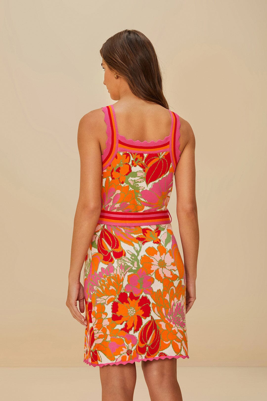 Embrace the playful spirit of the Beige Spring Affair Knit Wrap Mini Dress. Adorned with vibrant floral patterns in vivid orange, pink, and green, this dress brings a touch of tropical charm to your wardrobe. The flattering V neckline is beautifully complemented by the wrap silhouette and accented with delicate scalloped edges. Perfect for sunlit strolls and alfresco gatherings, it’s a delightful celebration of color and life.