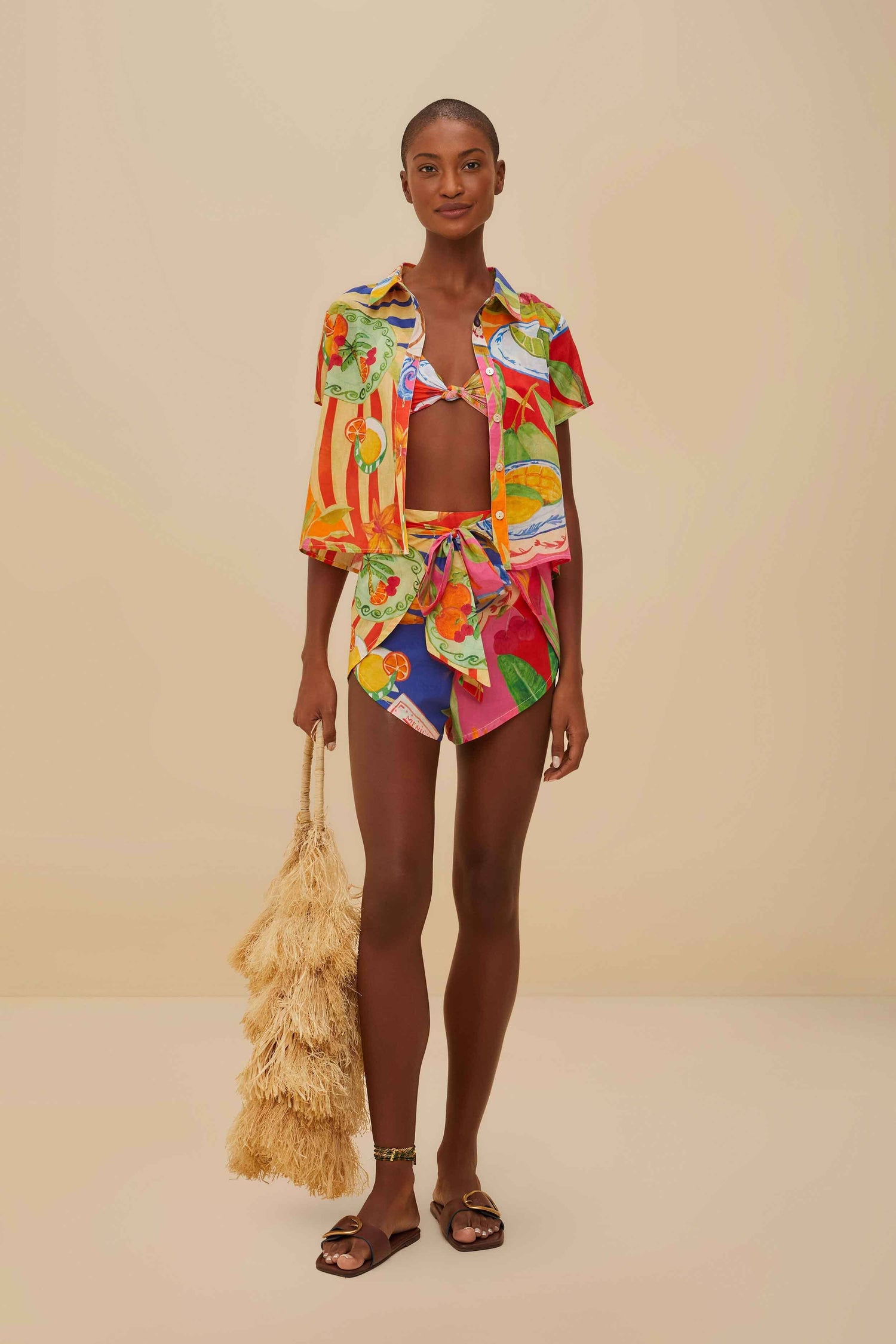 Embrace the vibrant spirit of the season with the Multicolor Summer Picnic Shorts from FARM Rio. These shorts boast a playful cascade of vivid colors and tropical patterns that capture the essence of sunlit joy. The flowy design features a charming front tie, evoking a sense of carefree elegance. Perfect for leisurely days and lively gatherings, this piece is a warm invitation to savor the beauty of summer.
