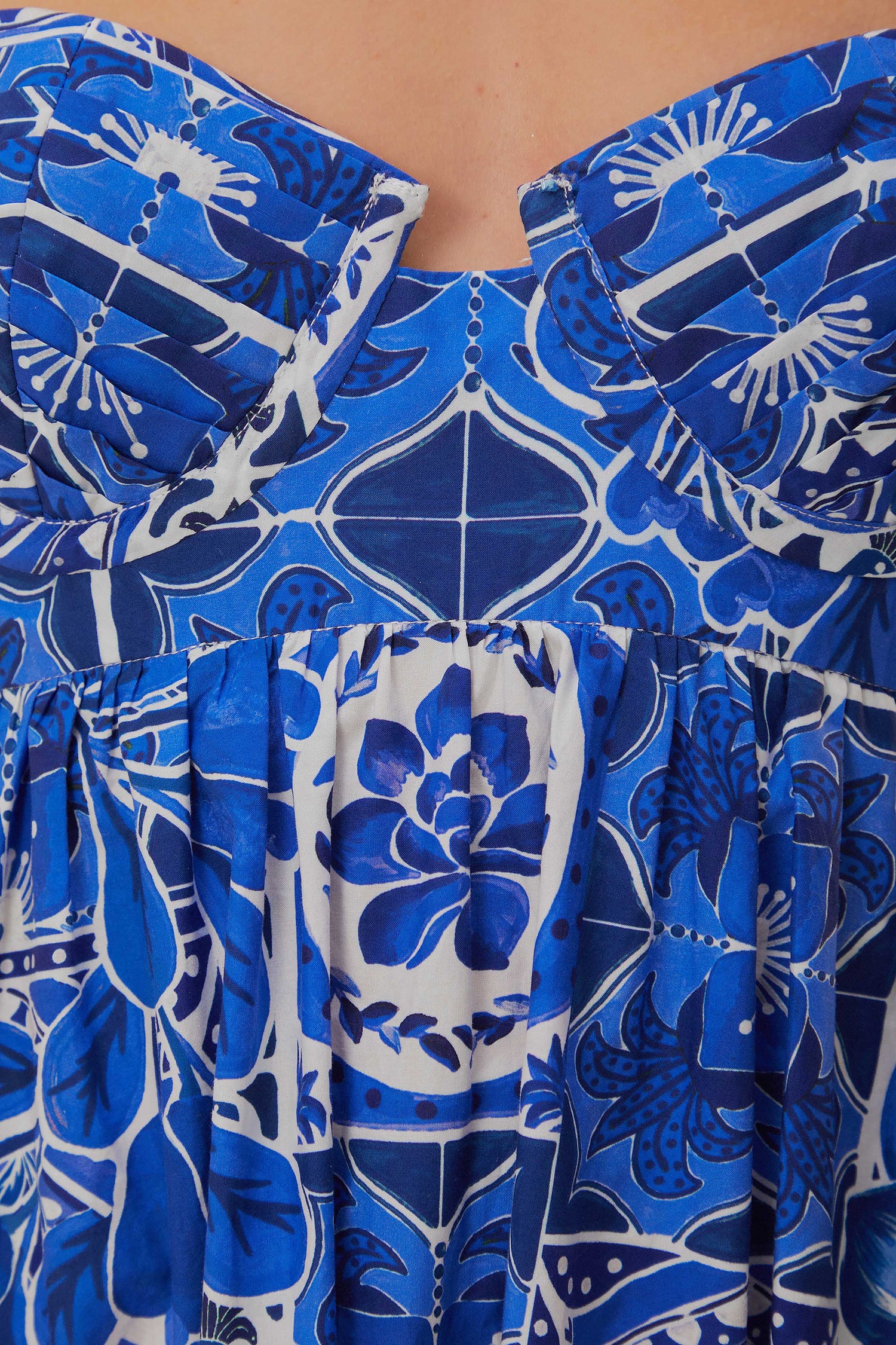 Indulge in the dreamy elegance of the Blue Tile Dream Sleeveless Maxi Dress. Boasting a sweetheart neckline and an invisible zipper at the back, this dress is both comfortable and effortlessly stylish. Perfect for any occasion, this dress will make you feel like a true fashionista.